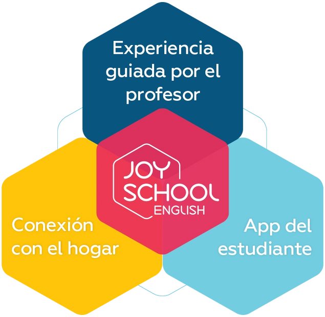 Joy School English ayuda a enseñar inglés y valores en tres formas importantes interconectadas. Primero, un grupo de herramientas de docencia permiten que se puedan dar instrucciones a pequeños grupos o a una clase completa. Segundo, los estudiantes pueden aprender independientemente con una app móvil llena de juegos, canciones y videos. Tercero, los padres pueden permanecer involucrados en el progreso del estudiante con reportes y herramientas incorporadas en la app que alientan la interacción padre-hijo.